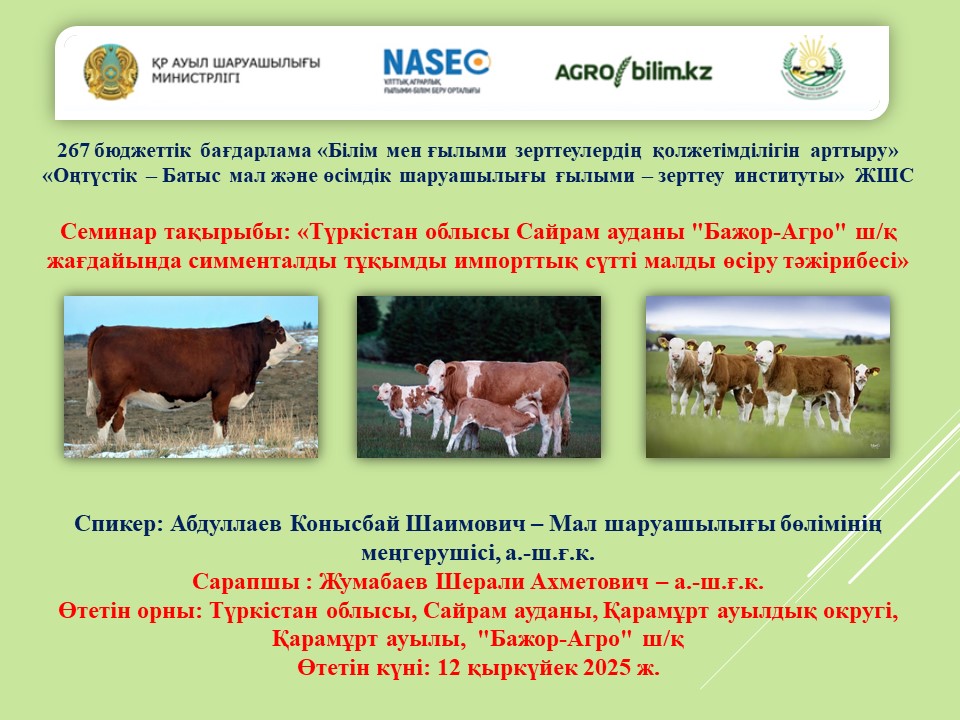 🗣 Спикер: Абдуллаев Конысбай Шаимович Ауыл шаруашылығы ғылымдарының кандидаты, мал шаруышылығы бөлімінің меңгерушісі
