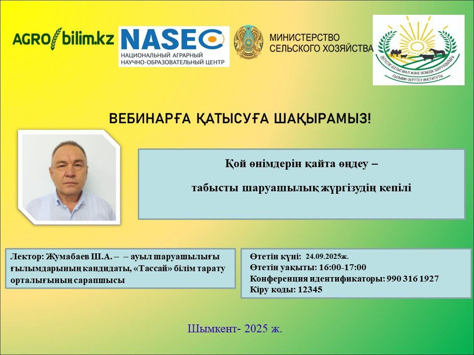 📚 ЖШС «Оңтүстік-Батыс мал және өсімдік шаруашылығы ғылыми-зерттеу институты» сіздерді “Білім мен ғылыми зерттеулердің қолжетімділігін арттыру» бағдарламасы шеңберінде жүргізілетін вебинарға шақырамыз!