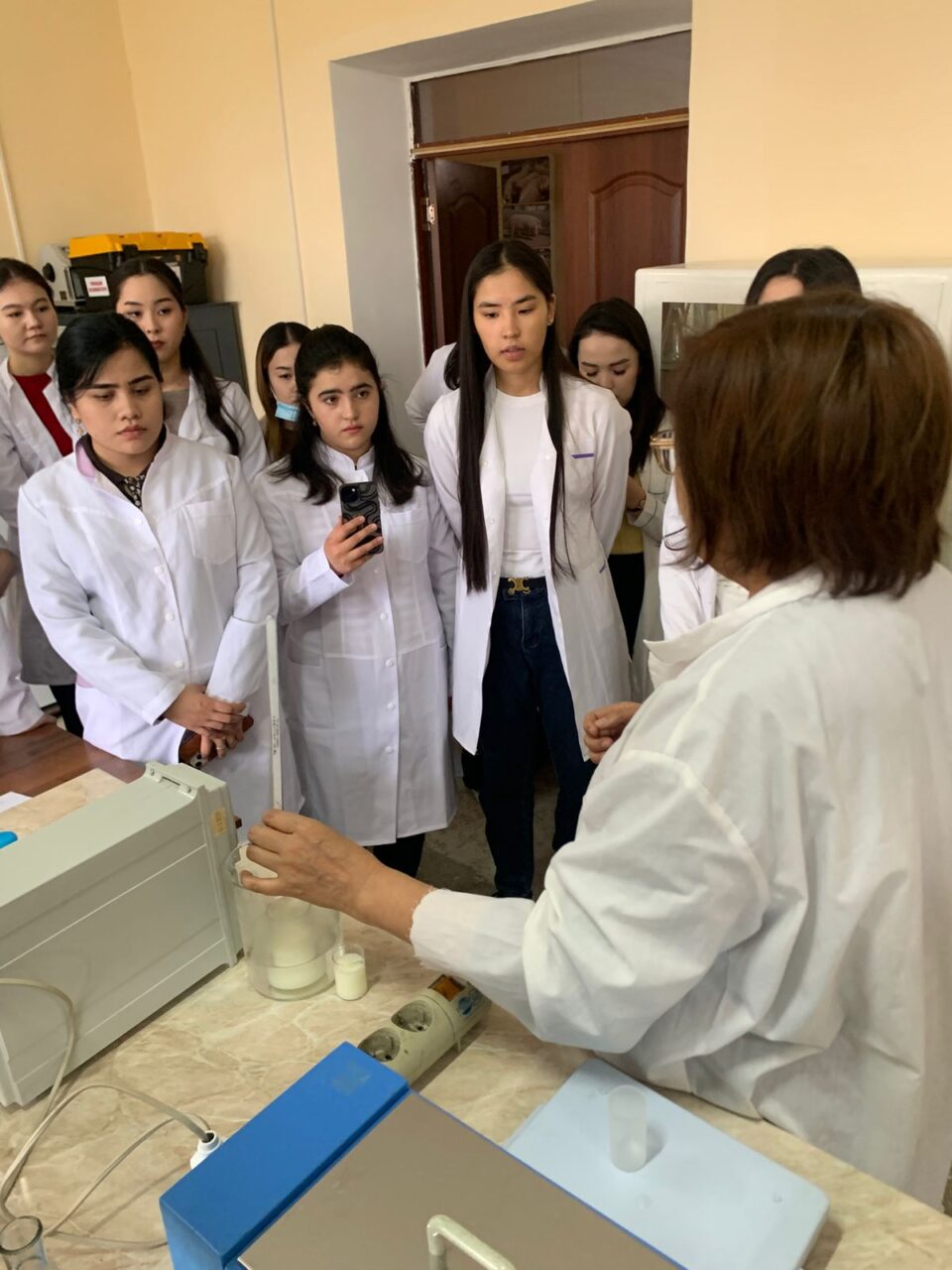 Руководителем стажировки выступила кандидат сельскохозяйственных наук Саниязова А.Ж. В ходе практических занятий студенты ознакомились с основными показателями качества коровьего молока, такими как массовая доля жира, сухие вещества, белок, вода, плотность другие важные параметры как соматические клетки. Были рассмотрены современные методы их определения, а также принципы работы лабораторного оборудования.